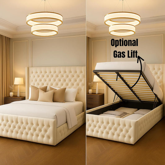 🛏️ Atomic Sleep™️ Luxury Chesterfield Wingback Bed — King Size with Gas Lift Storage